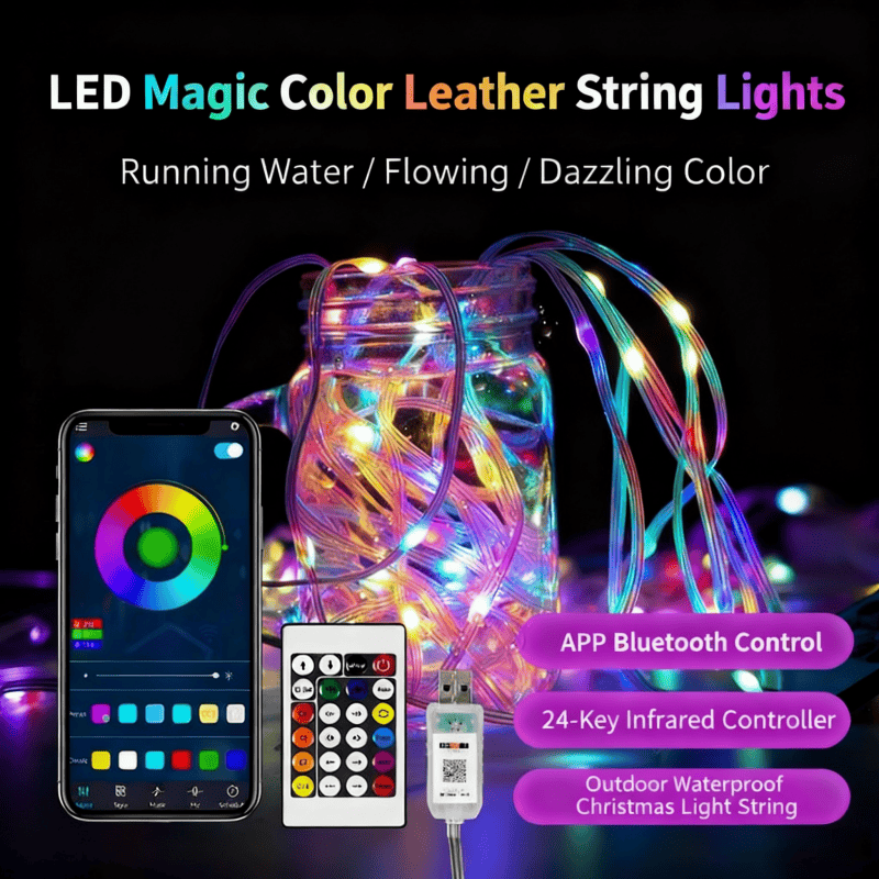 - Flowing Light Technology: LED bulbs (5mm mini size) are spaced 10cm apart, creating a continuous "flow" of color. Modes like Christmas Gradient cycle through red, green, and gold; Camping Warm Glow stays on soft amber/blue for cozy outdoor nights.