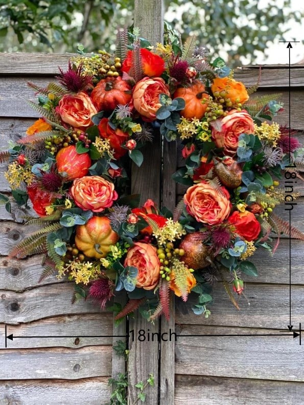 💖This lovely farmhouse-style pumpkin door hanger will look lovely gracing your front door this fall! Use this faux peony pumpkin wreath to say "Welcome to our home" throughout the season.💖Enjoy this beautiful, deluxe wreath for years to come! Welcome your guests with this stunning Forever autumn pumpkin wreath.